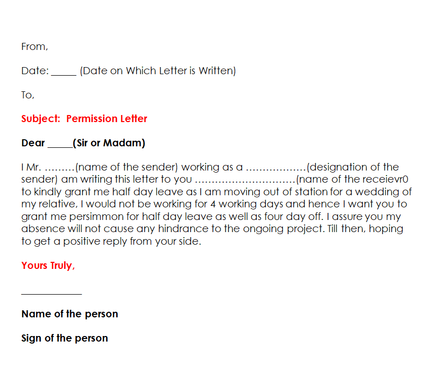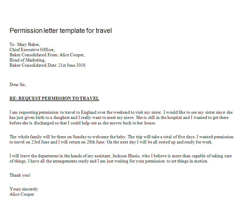 Example Permission Letter Template for Trip