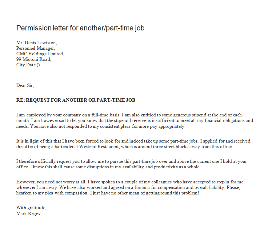 Sample Permission Letter Template for Part Time Job