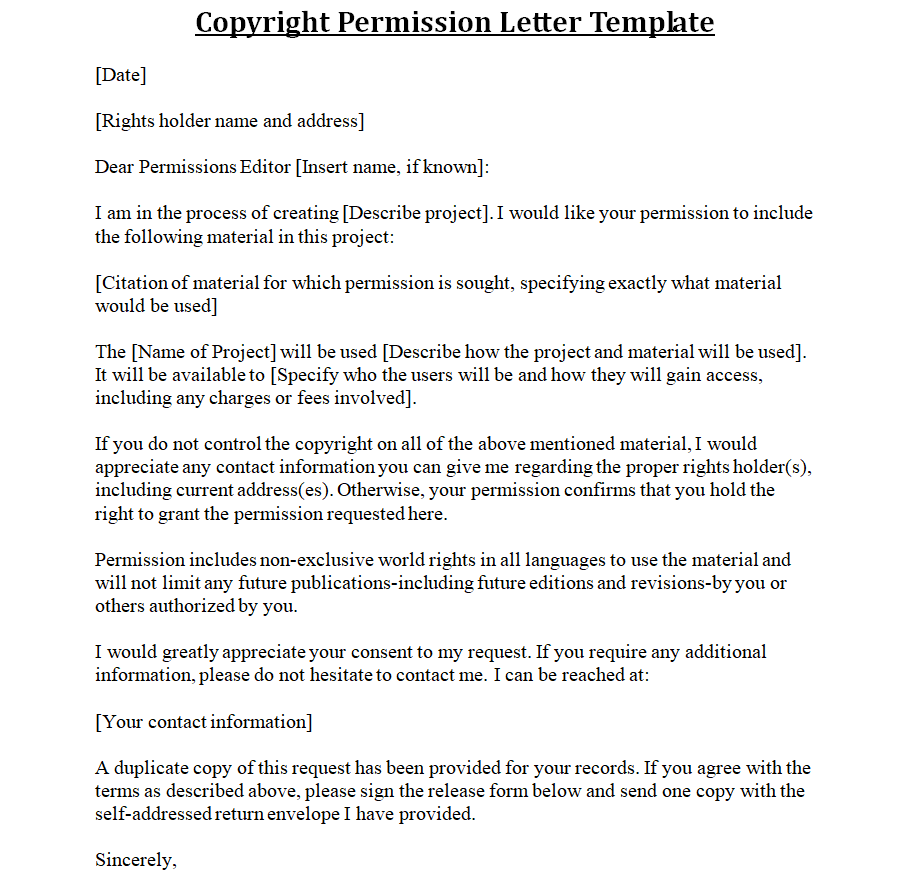 Copyright Permission Letter Template in MS WORD