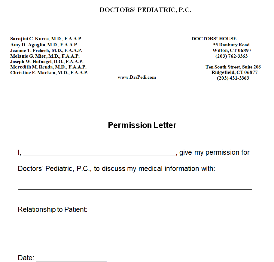 Simple Pediatrition Permission Letter Template