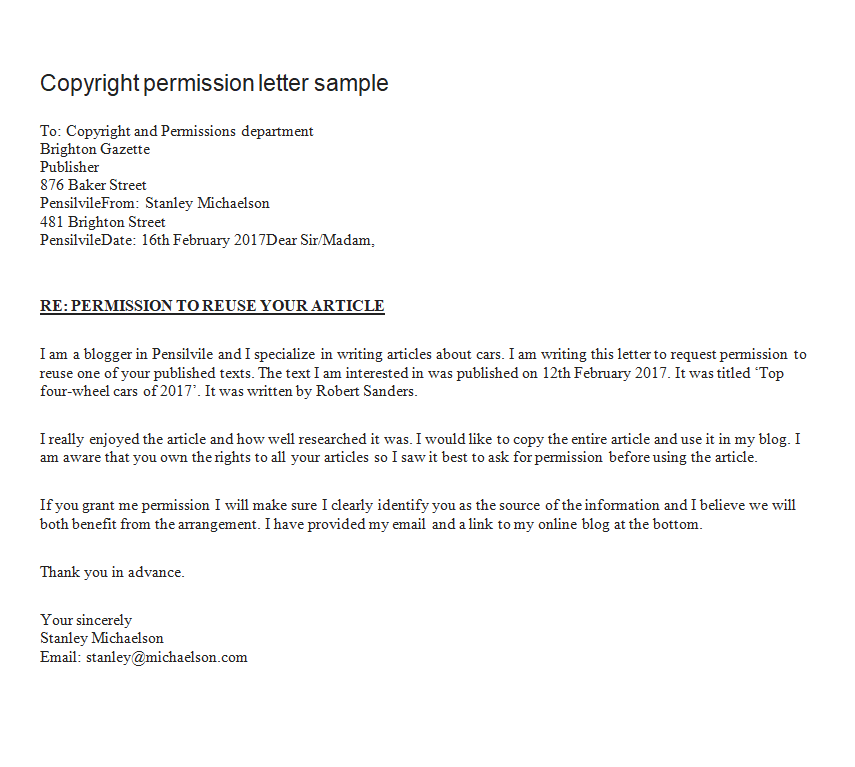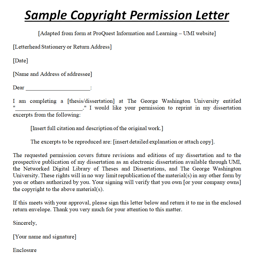 Copyright Permission Letter Sample in MS WORD