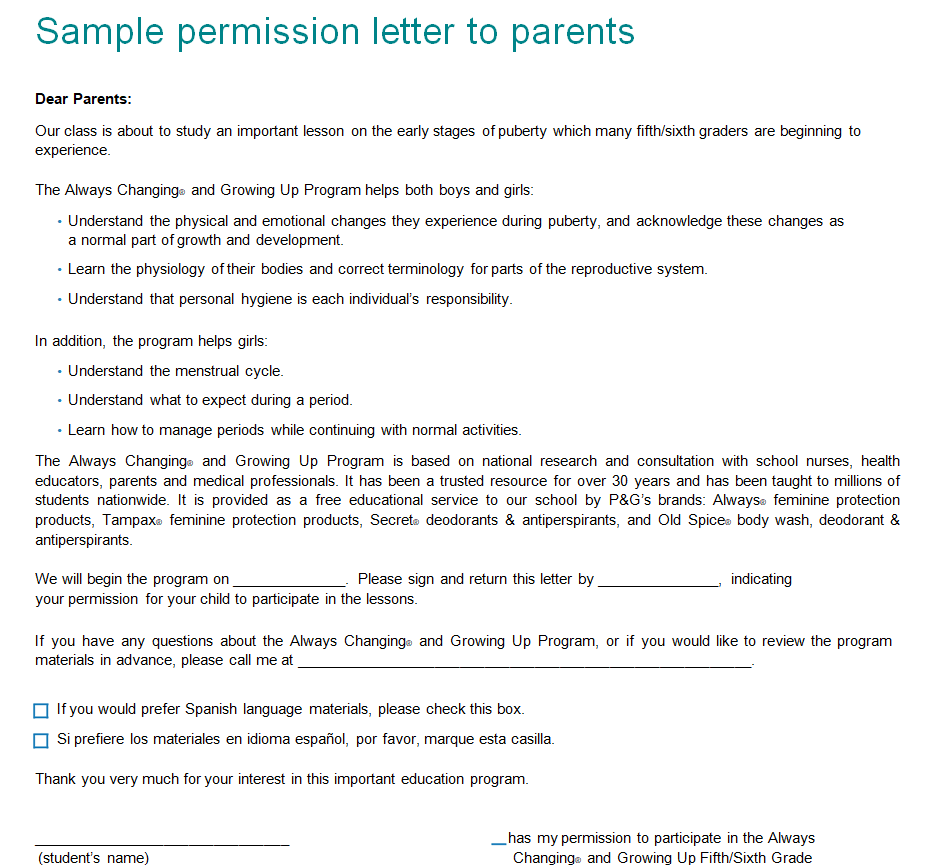 Detailed Permission Letter Sample to Parents