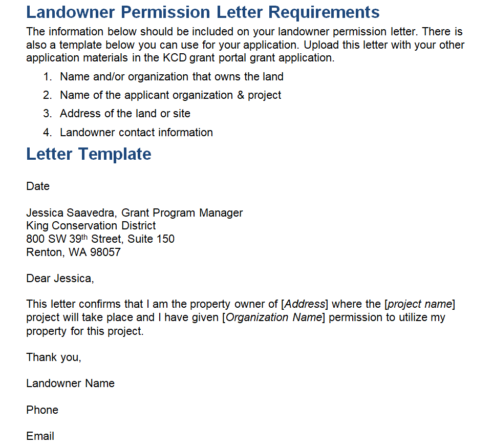 Landowner Permission Letter Doc Sample