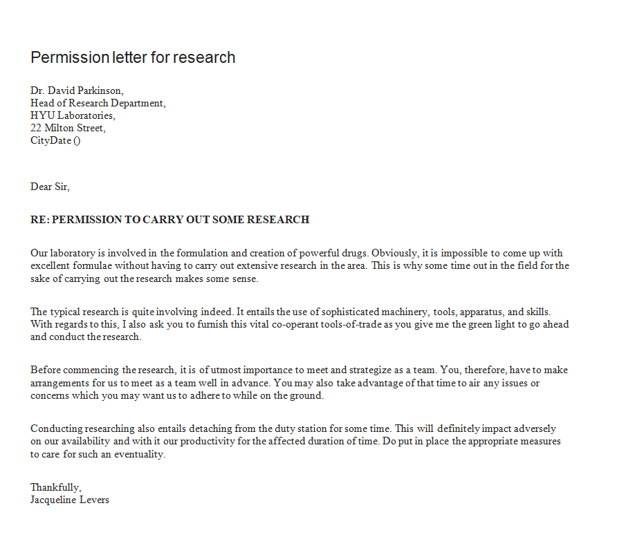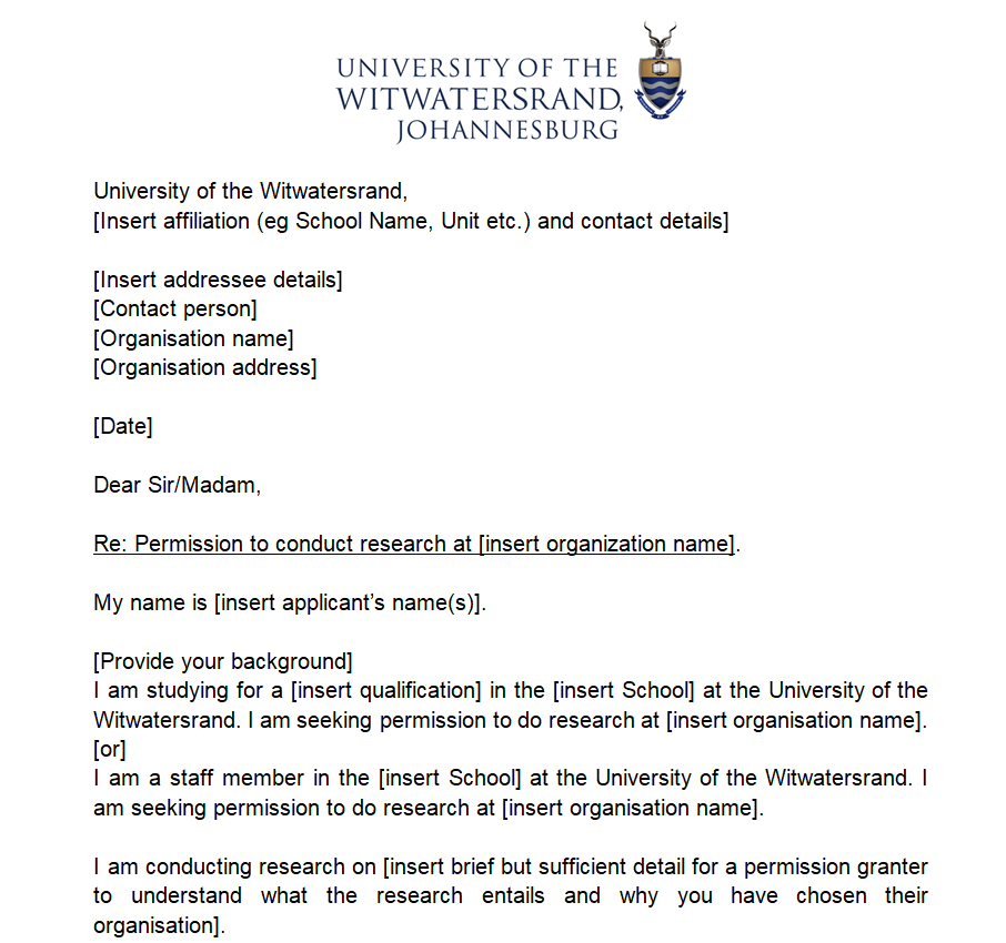 Formal Permission Letter Template for Research