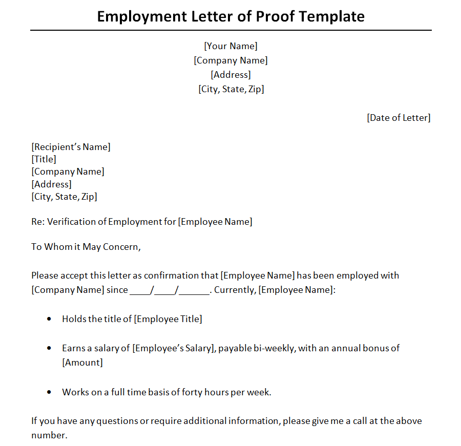 Example of an Employment Proof Letter Template