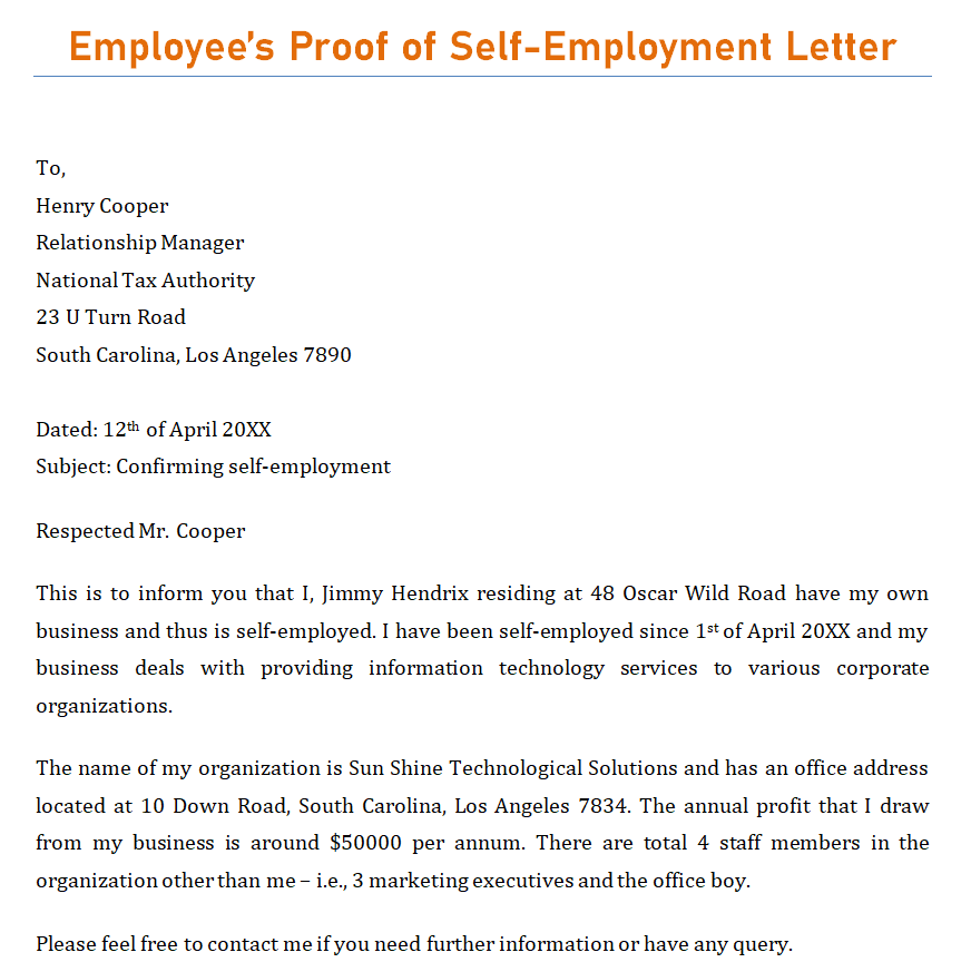 Employee’s Official Proof of Self-Employment Letter Template