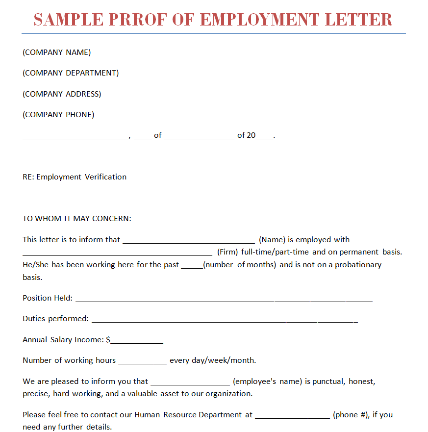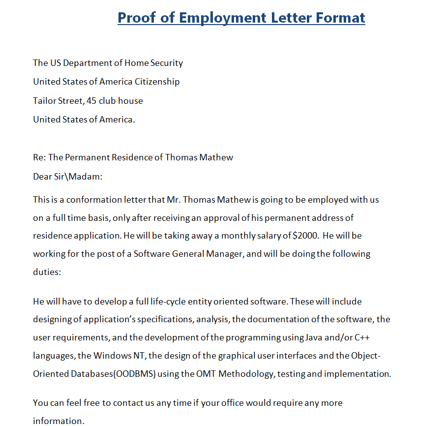 Standard Proof of Employment Letter Format