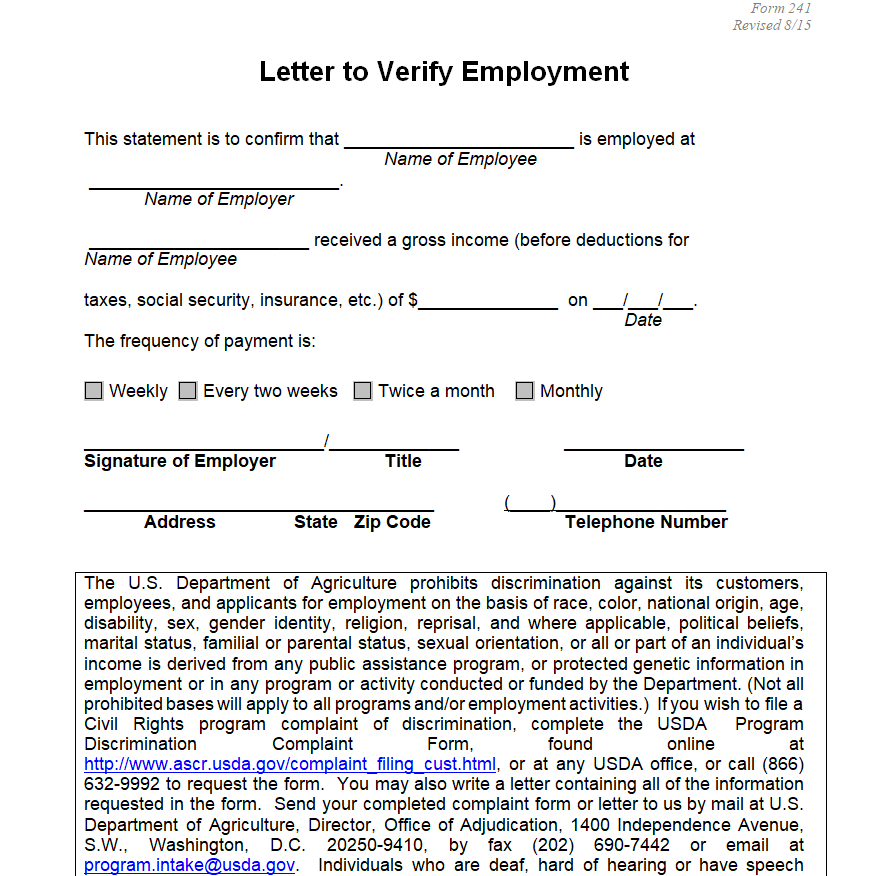 Fillable Employment Verification Letter Sample Doc