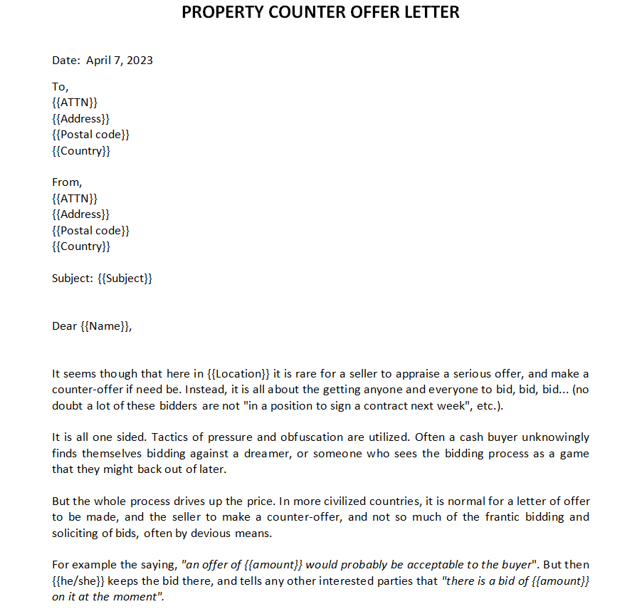 Property Counter Offer Letter Template