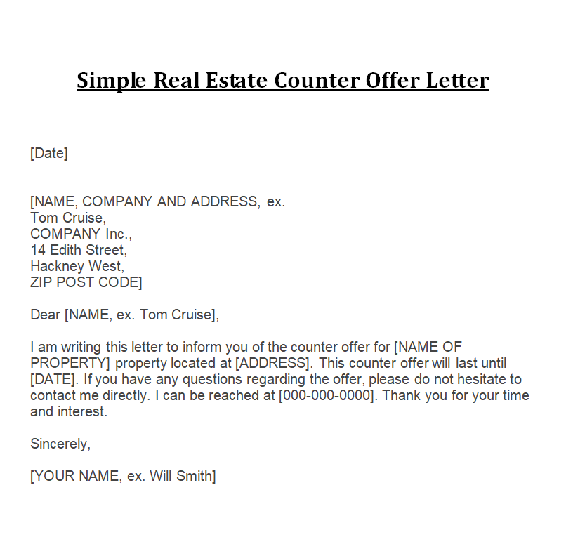 Simple Real Estate Counter Offer Letter Template Word