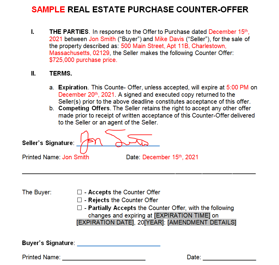 Real Estate Counter Offer Letter Sample Doc