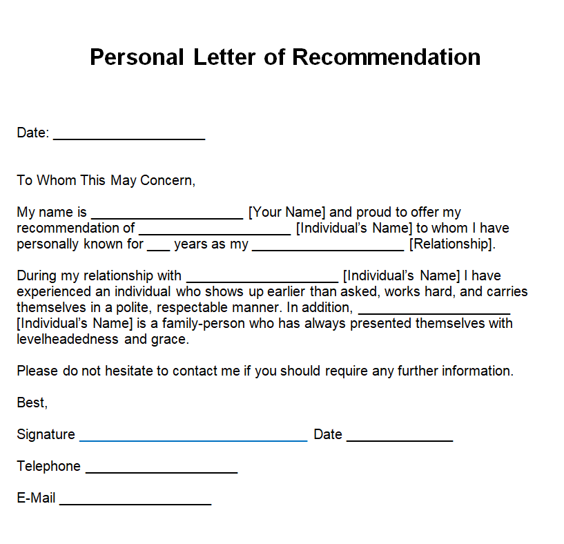 Free Printable Recommendation Letter for a Friend Template