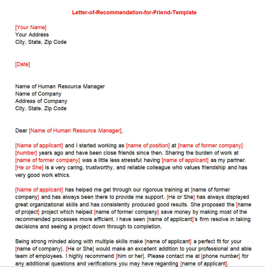 Check the FREE Recommendation Letter for a Friend Templates Below