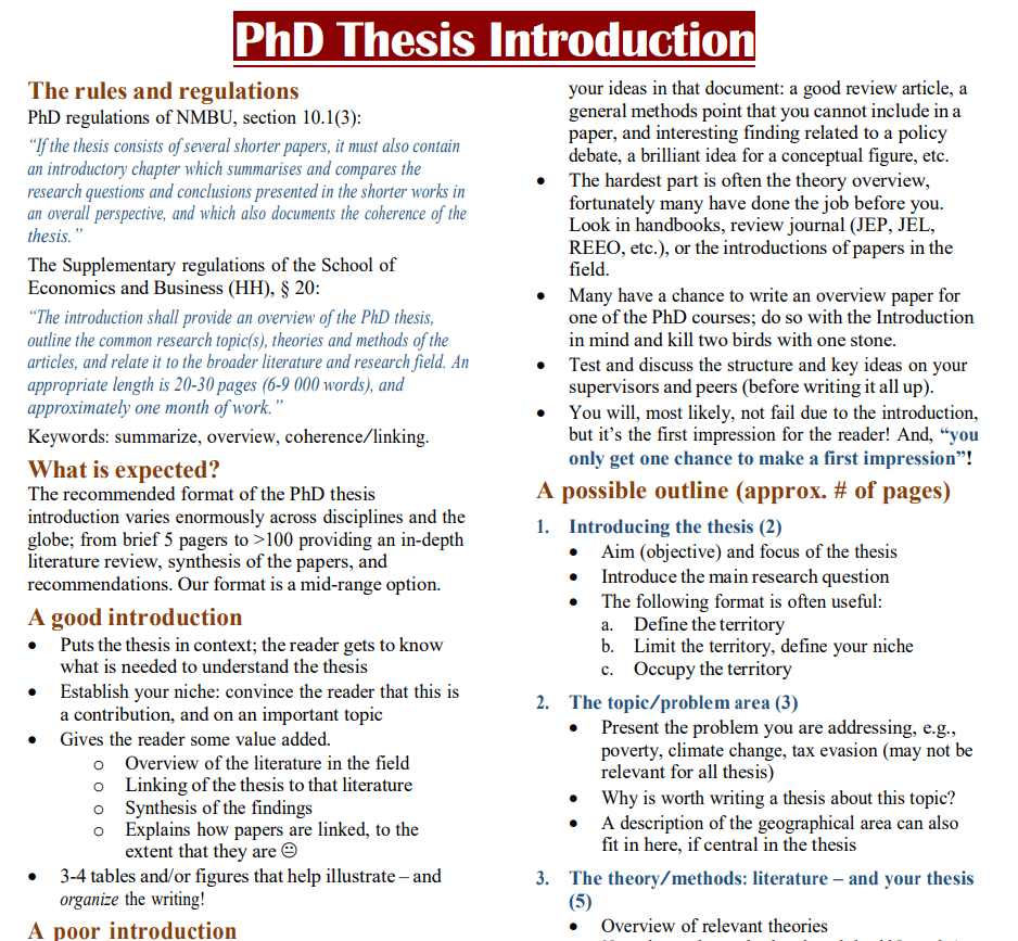 - In the thesis introduction section, don’t forget to provide a roadmap for the rest of the thesis introduction.