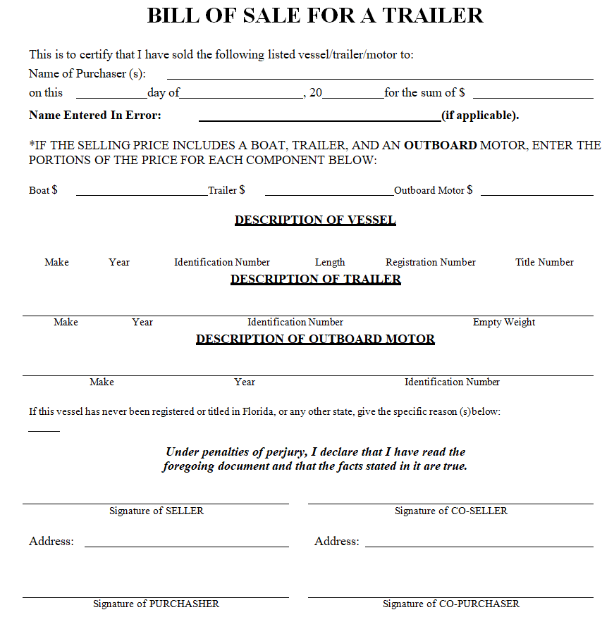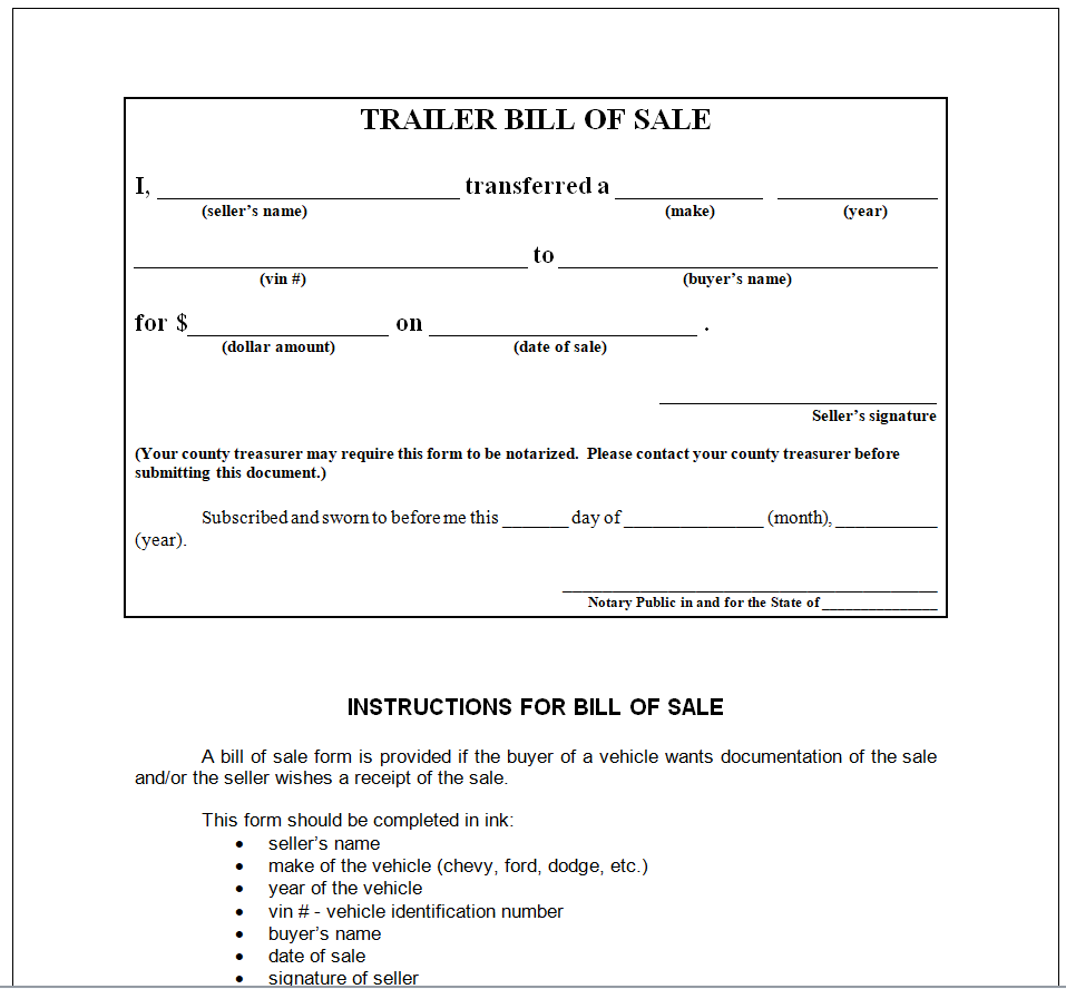 Handy Bill of Sale Template for Trailer