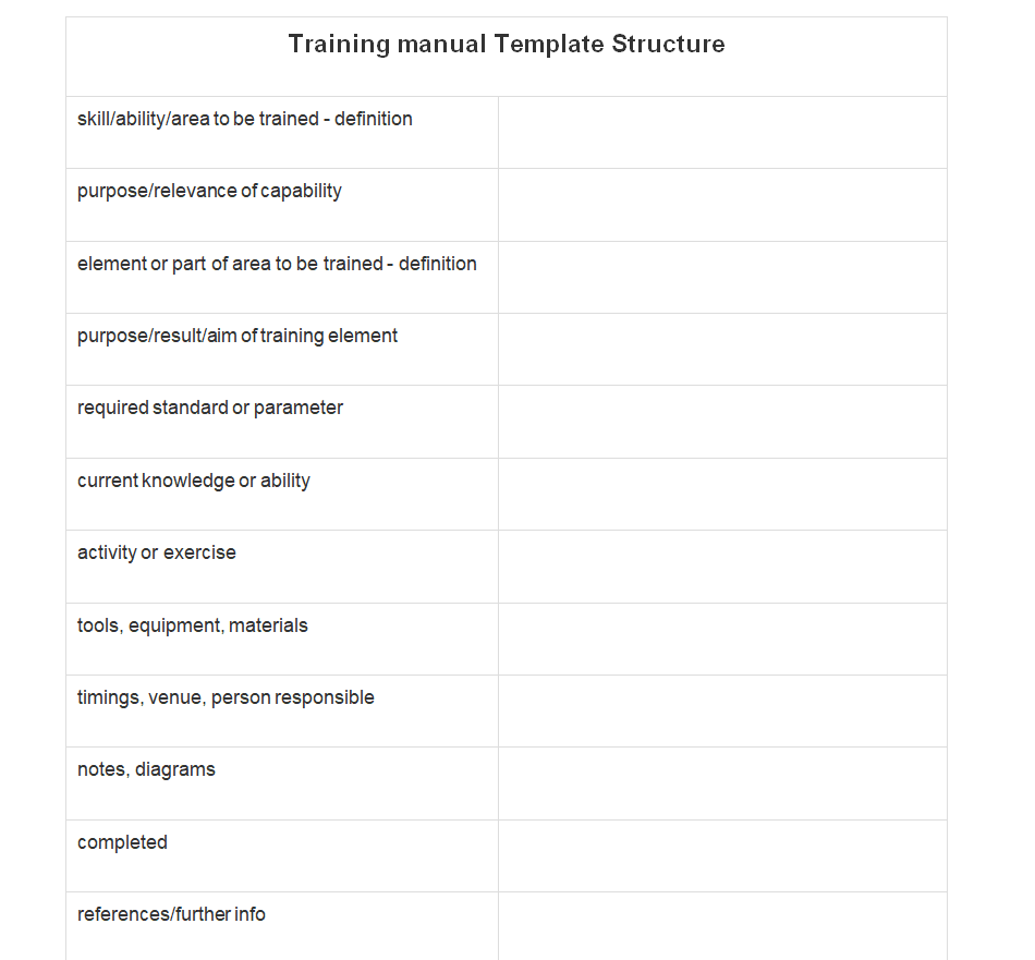 Free Editable Training Manual Template Structure