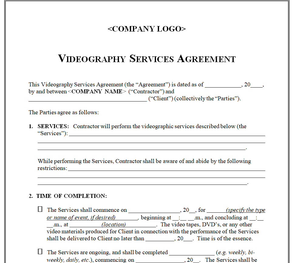 By utilizing our professionally designed templates, you convey a sense of reliability and professionalism, assuring clients that they are in capable hands. Our templates are crafted to reflect your dedication to delivering high-quality videography services while upholding industry standards and ethical practices. By employing these free Videography Contract Templates, you can streamline the contracting process, save time, and establish a strong foundation for successful videography projects. Whether you are a seasoned professional or just starting your videography business, our templates offer a user-friendly and comprehensive solution for creating legally binding contracts that protect your rights and ensure a smooth workflow. Take a moment to explore our collection of Videography Contract Templates, select the one(s) that best suit your needs, and click the provided ‘Download’ button to save the template file to your device. Start your videography projects on the right foot with our meticulously crafted templates and experience the benefits of clear and professional agreements that promote collaboration and success.