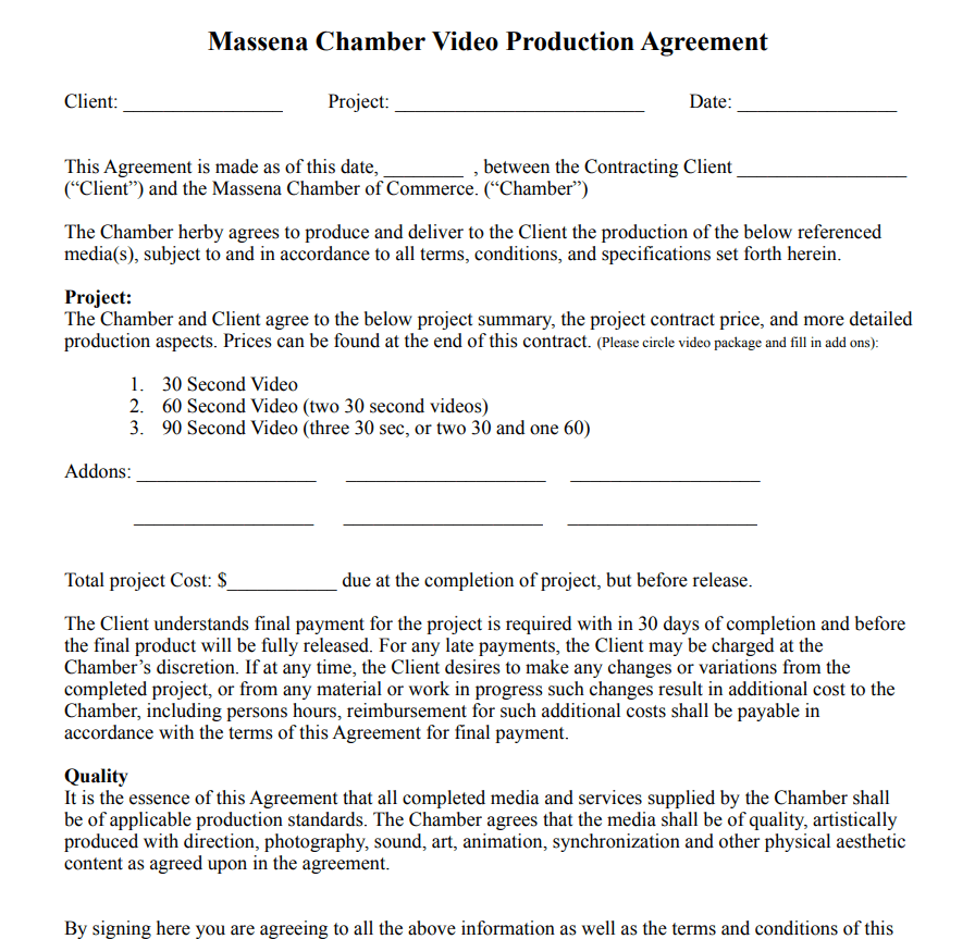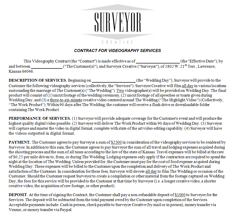From outlining the project scope, budget, and payment terms to addressing intellectual property rights and usage licenses, our templates provide clarity and transparency, setting clear expectations for both parties involved. Furthermore, our Videography Contract Templates go beyond the transactional aspects of the agreement and focus on fostering positive client relationships. We have incorporated sections that allow you to express your commitment to customer satisfaction, providing reassurance to clients that their vision and requirements will be met with utmost professionalism and care. By utilizing these templates, you demonstrate your dedication to delivering exceptional videography services while cultivating long-lasting partnerships built on trust and reliability.