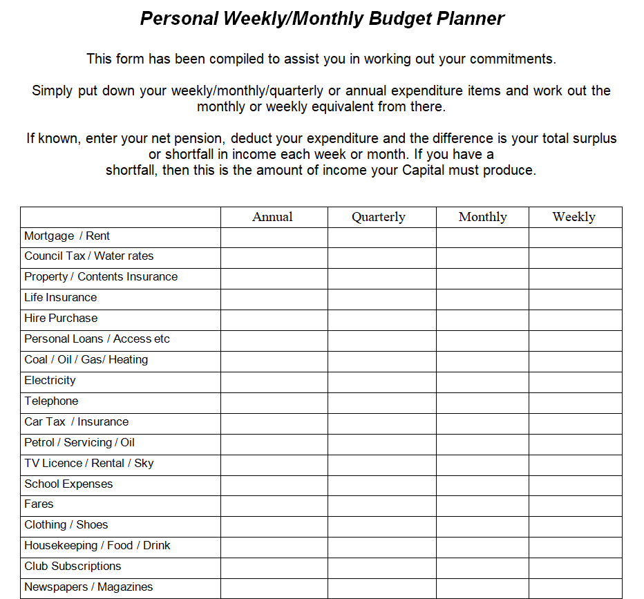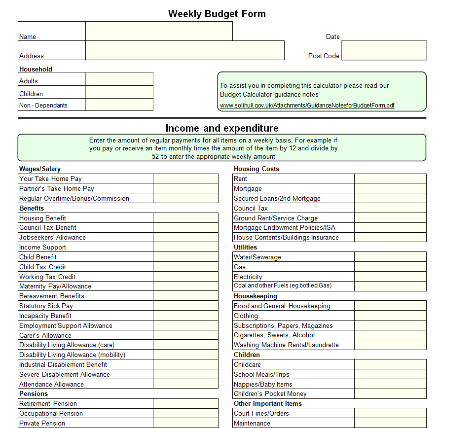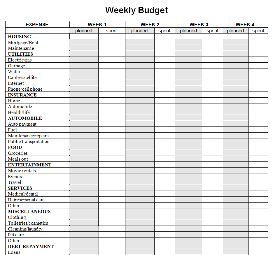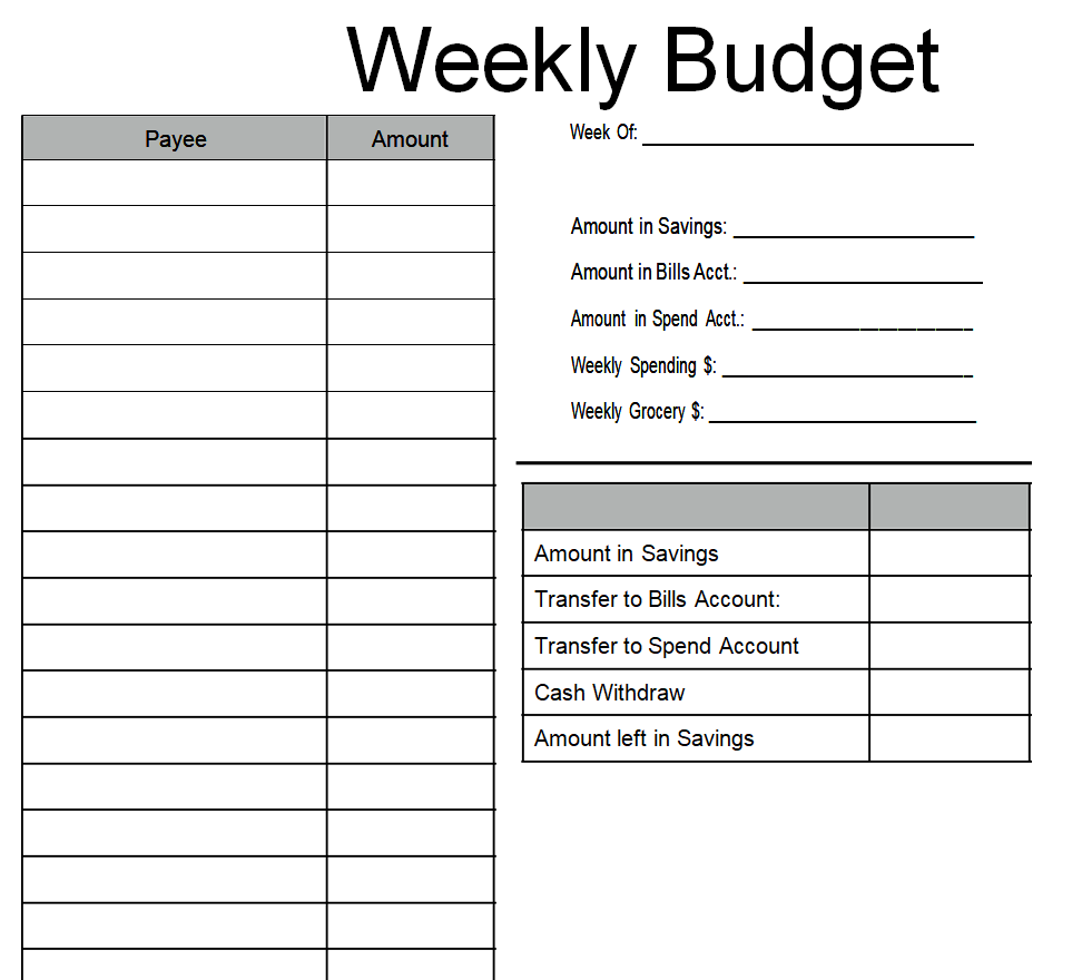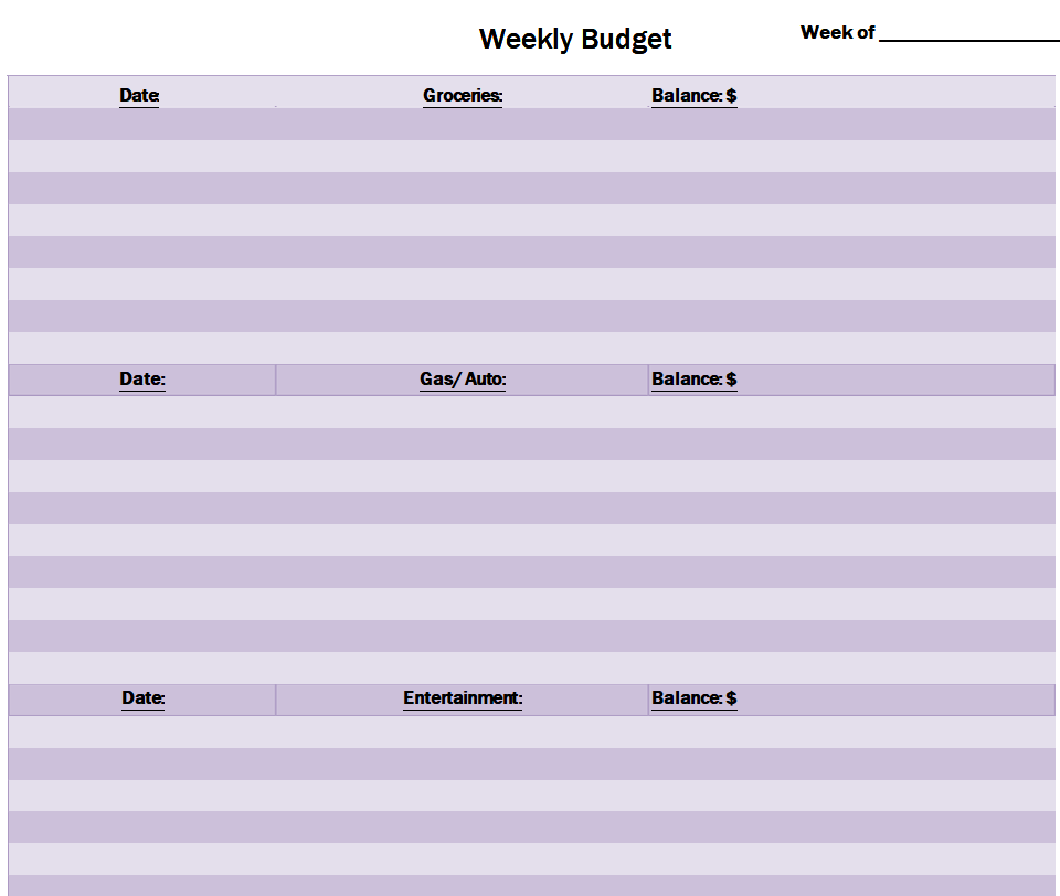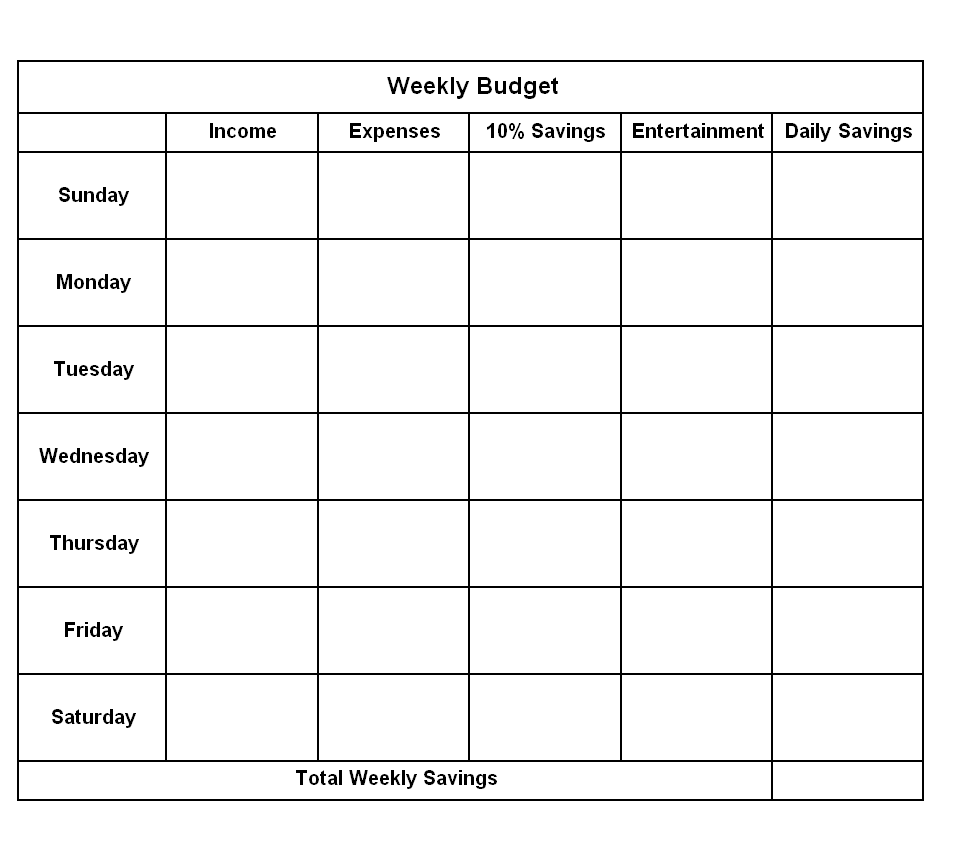 Blank Weekly Budget Word Template