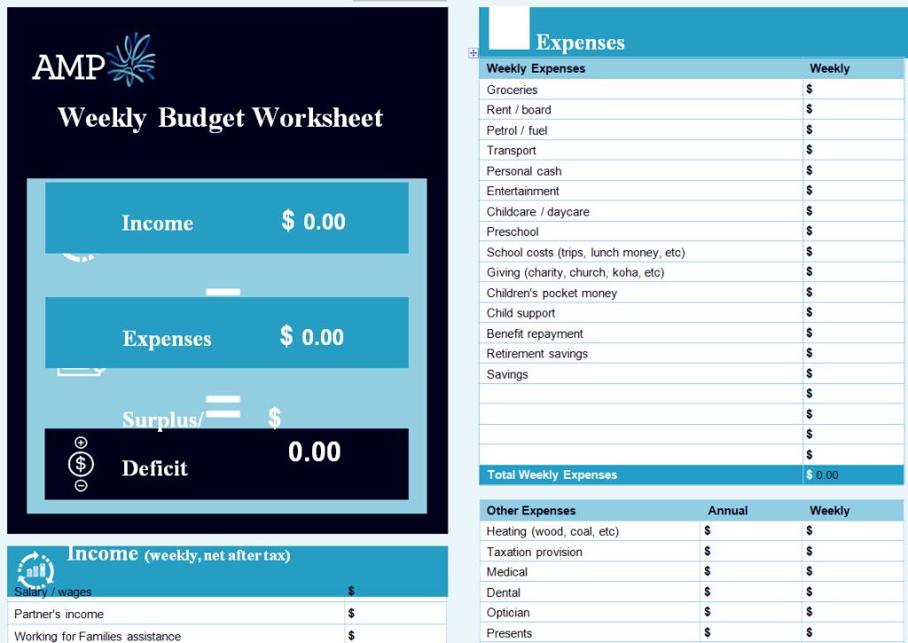 Printable Weekly Budget Worksheet Template