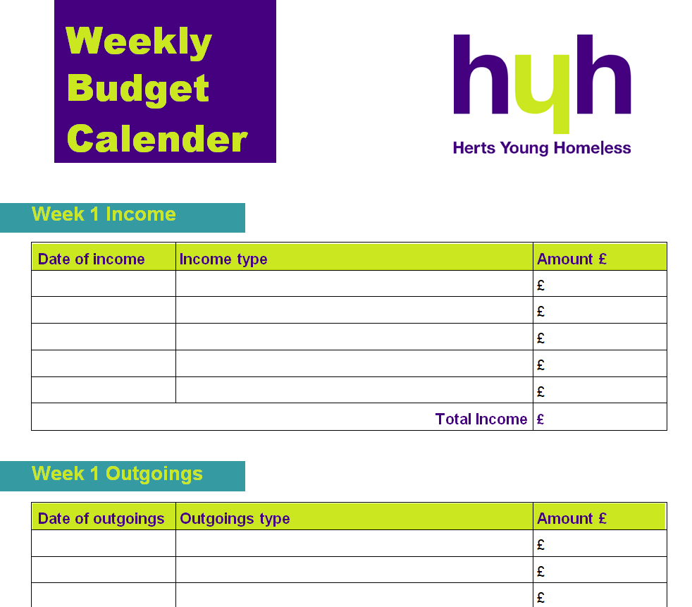 Weekly Budget Calendar Template