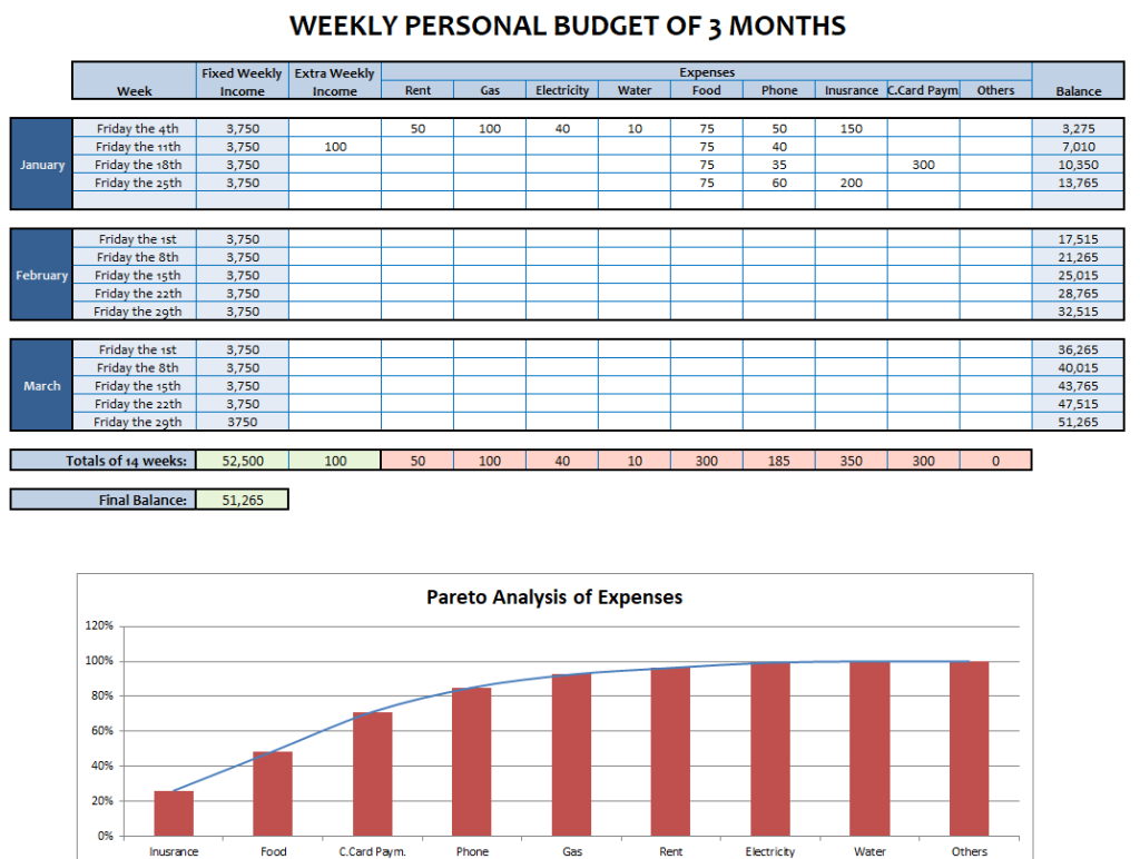 3 Months Weekly Personal Budget Template