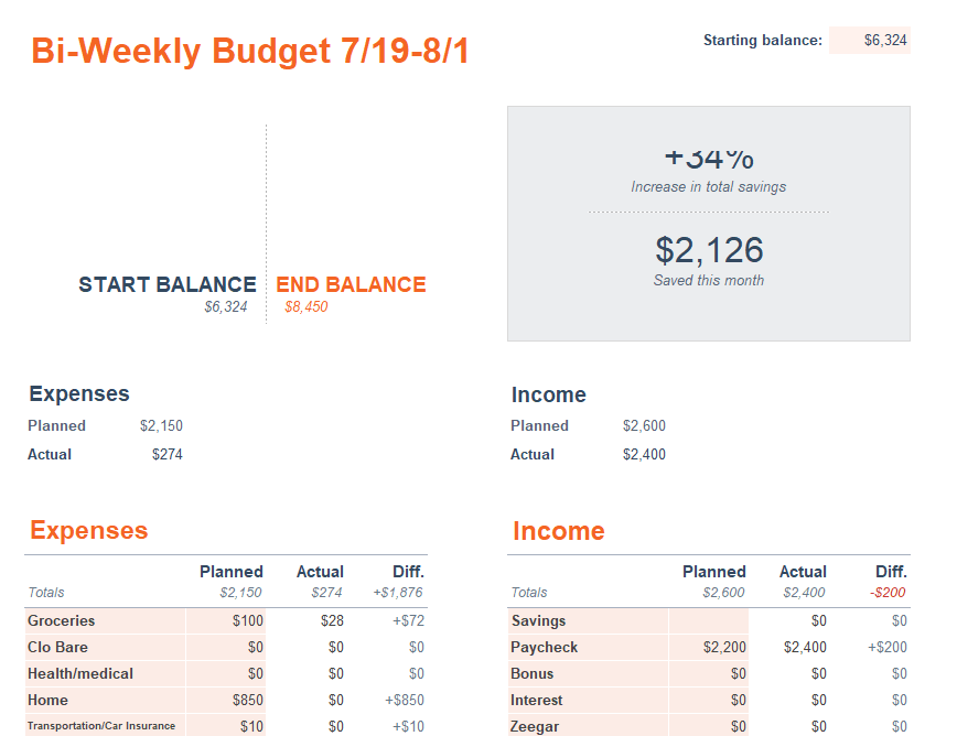 Formal Bi-Weekly Budget Template
