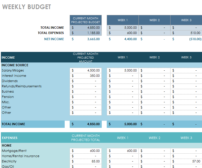 Free Editable Weekly Budget Template