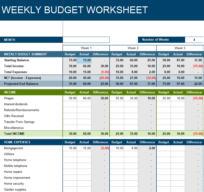 Handy Weekly Budget Spreadsheet Example