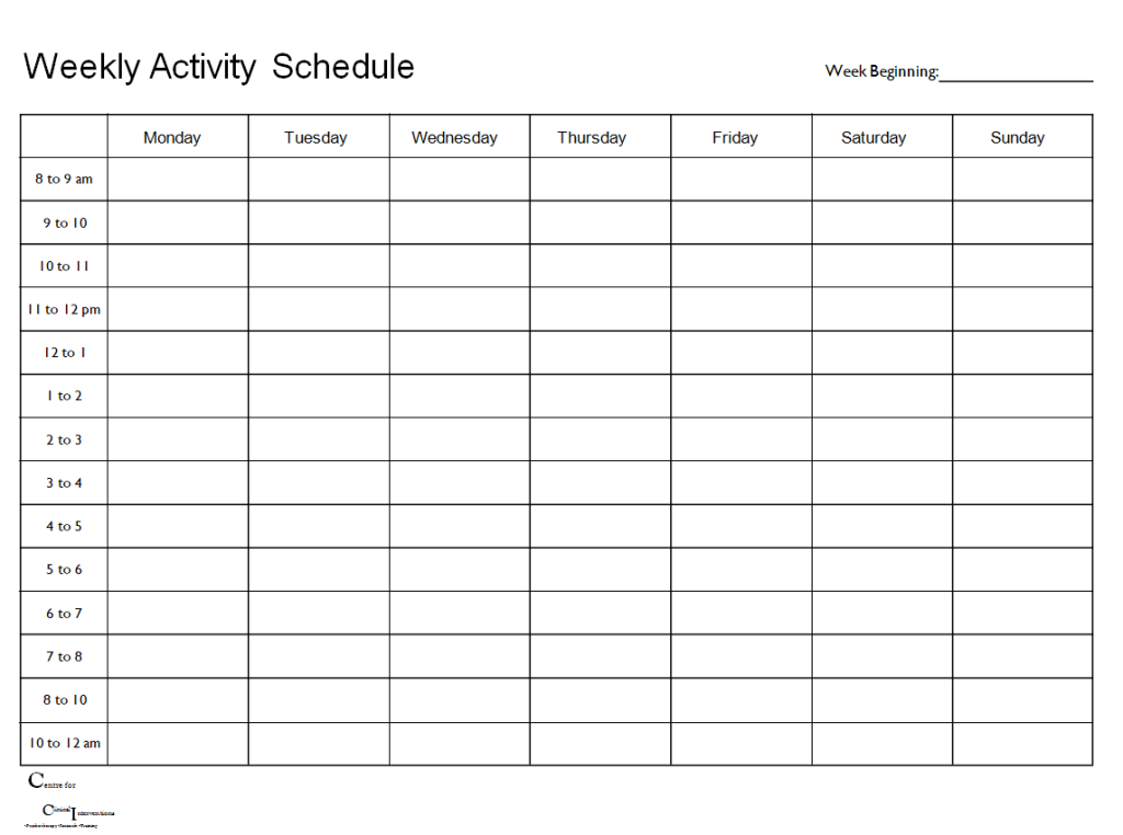 Simple Weekly Activity Schedule Template