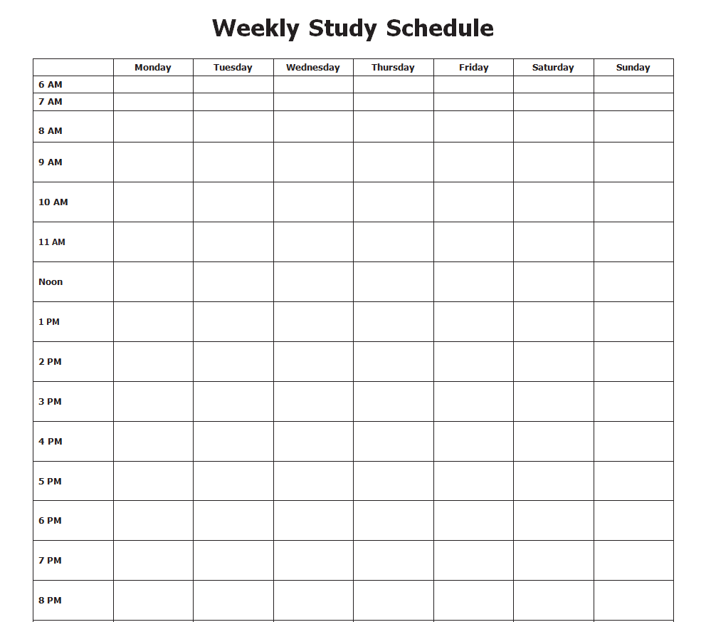 Detailed Weekly Schedule Template