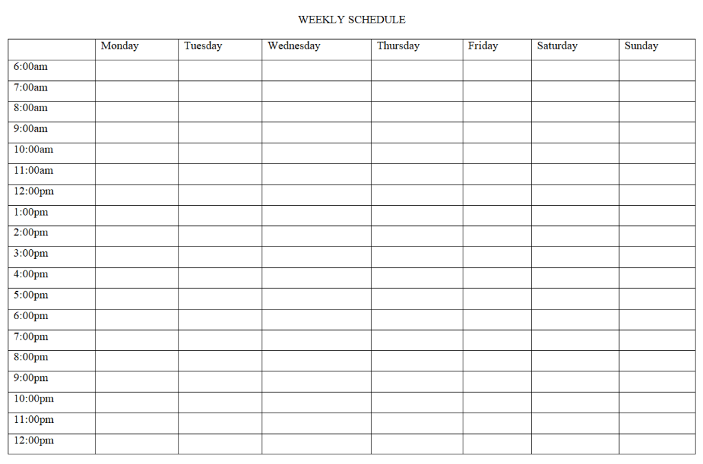 Blank Weekly Schedule Word Template