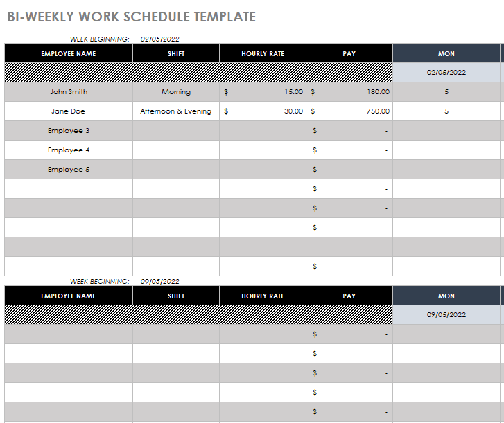 Bi-Weekly Work Schedule Template in MS EXCEL