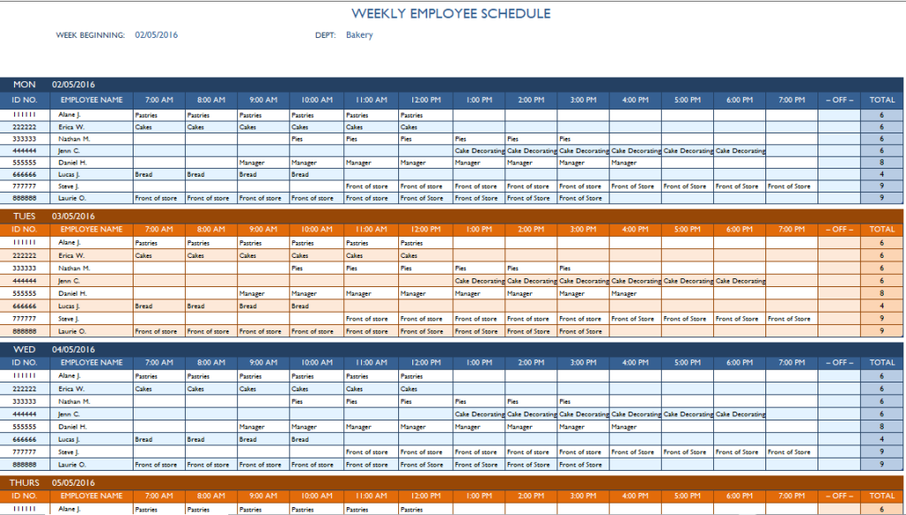 Business’s Weekly Employee Schedule Template Excel