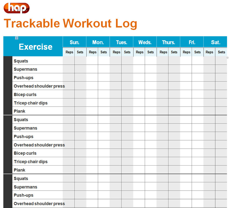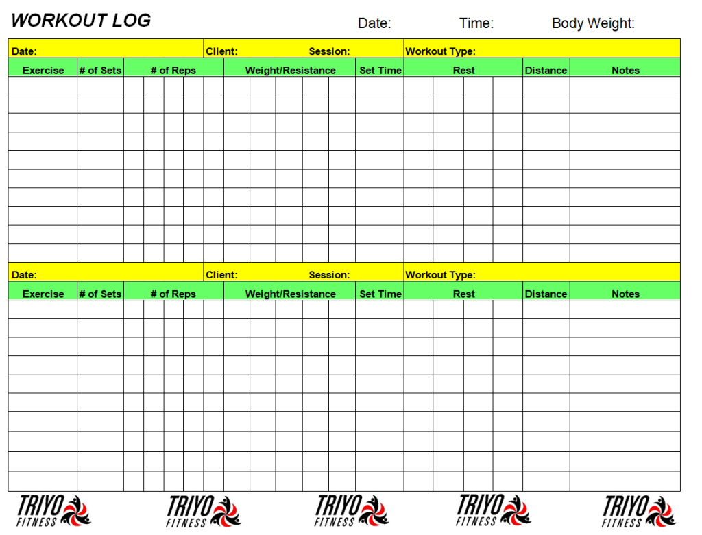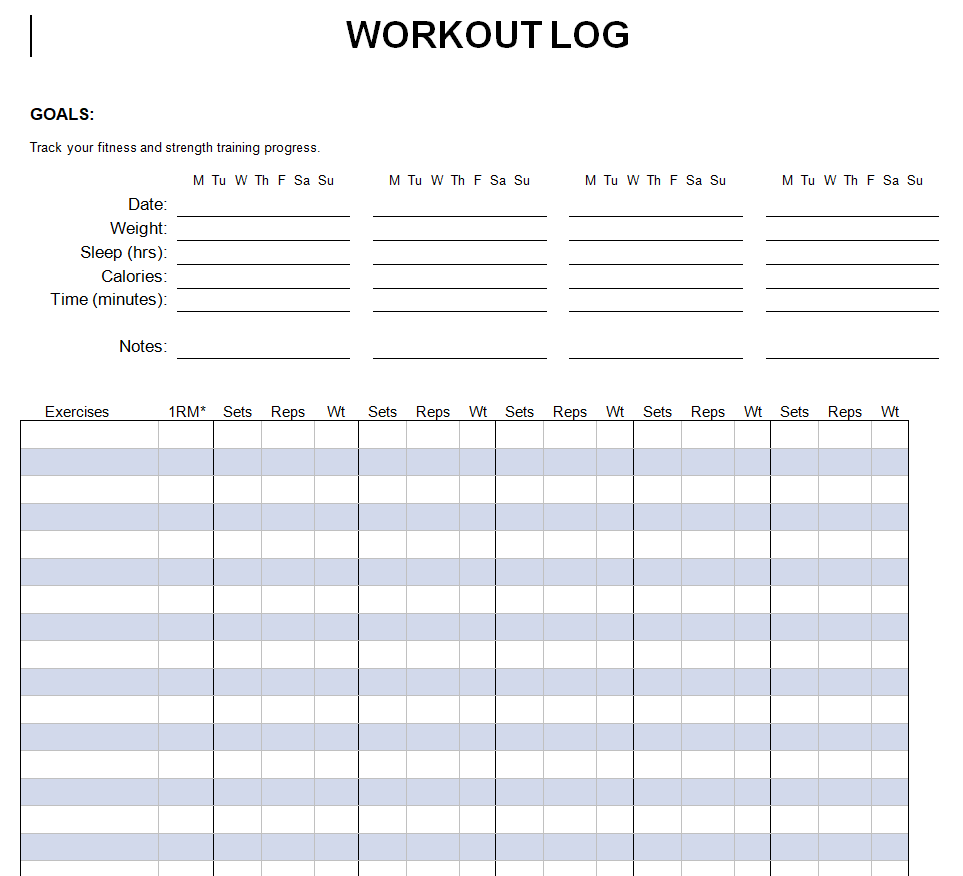 Trackable Workout Log Word Template