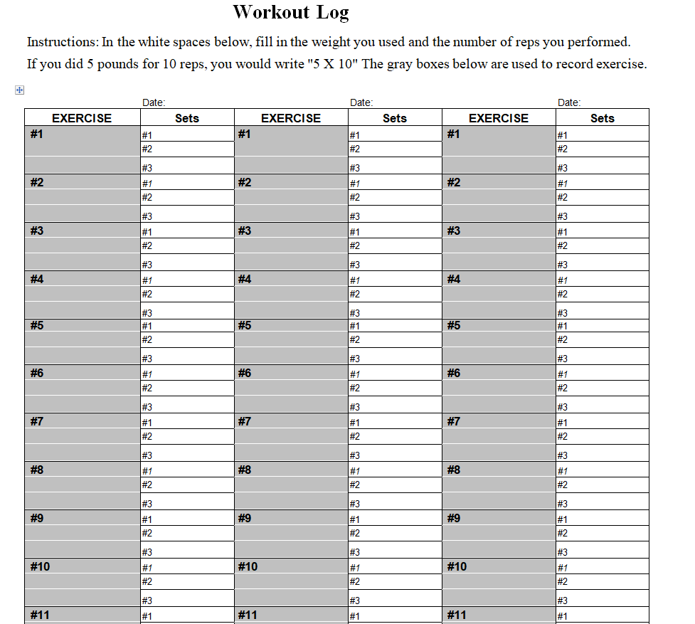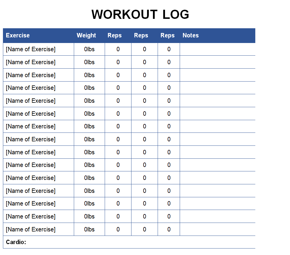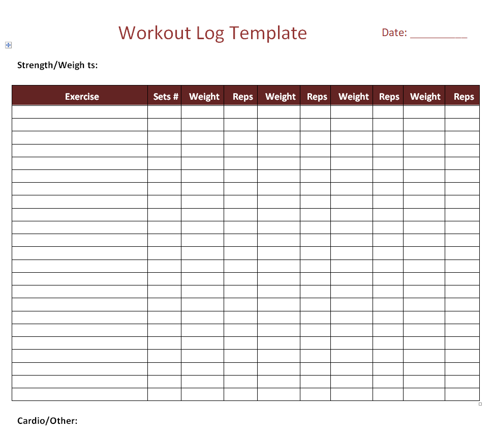 Download Workout Log Word Templates Here Below