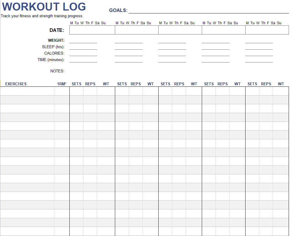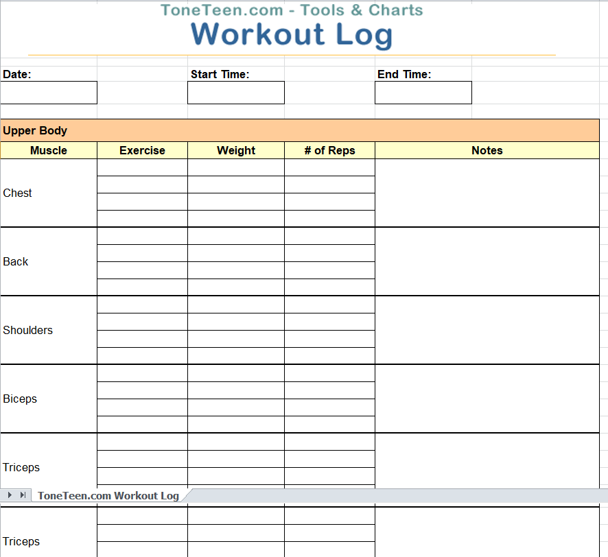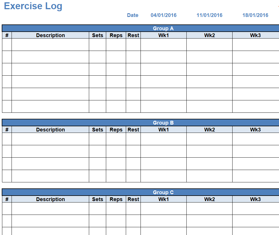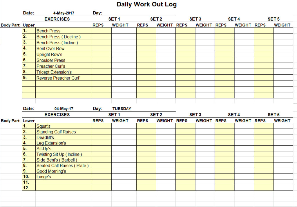 Download Workout Log Excel Templates Here Below