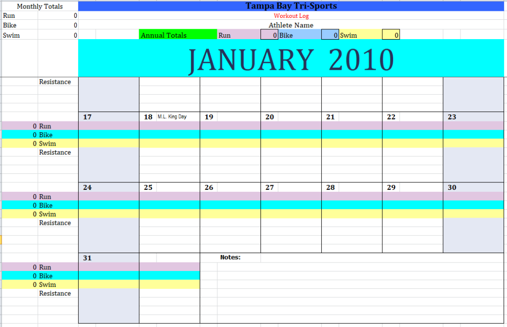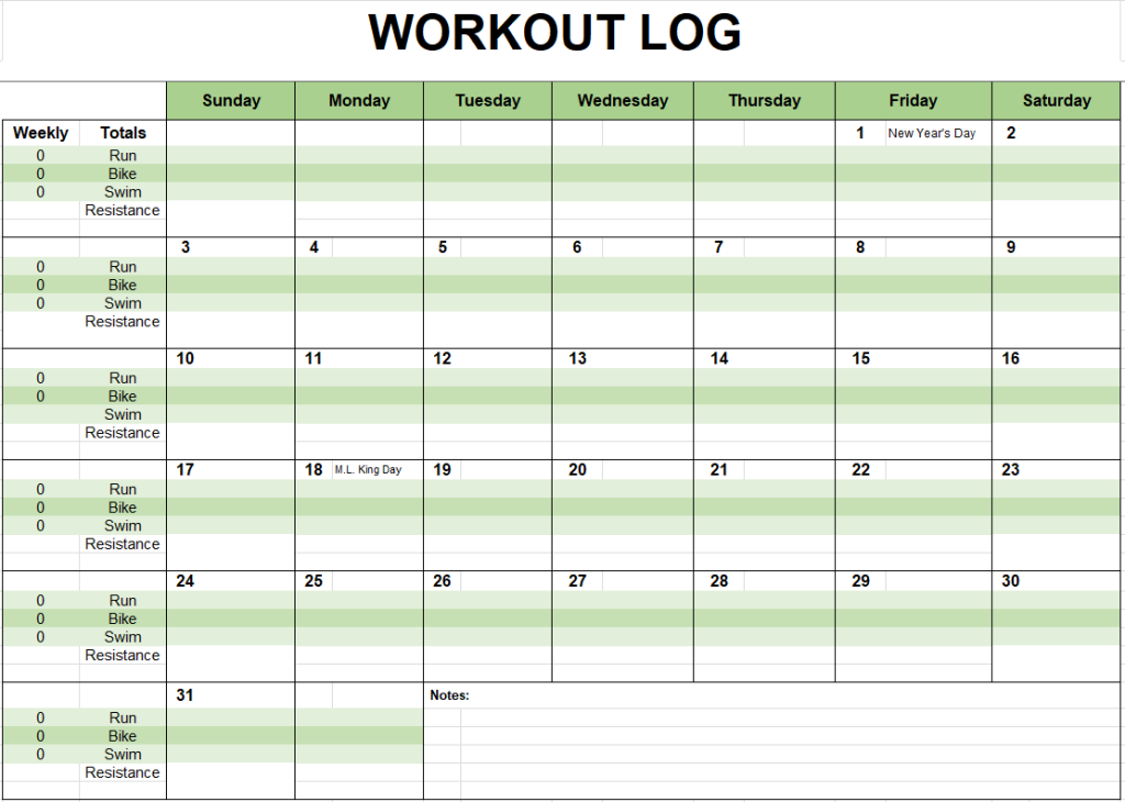 Monthly Workout Log Sample Sheet