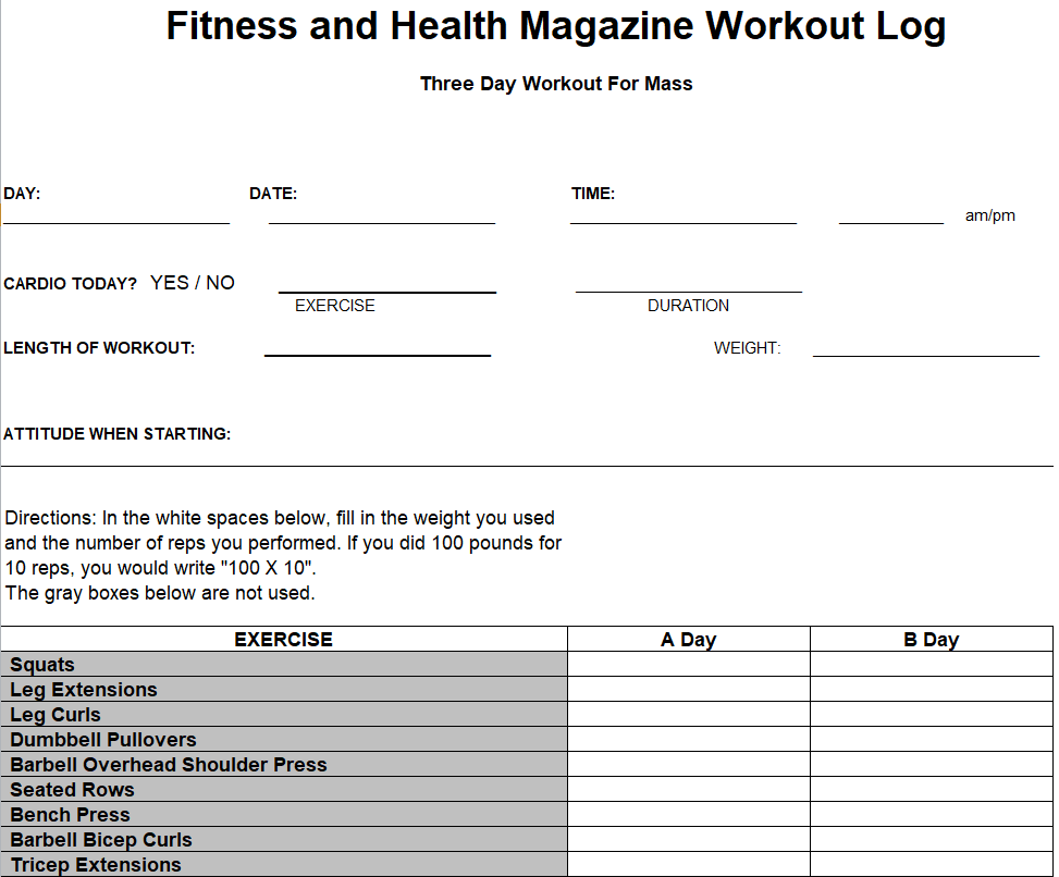 Fitness Magazine Workout Log Template
