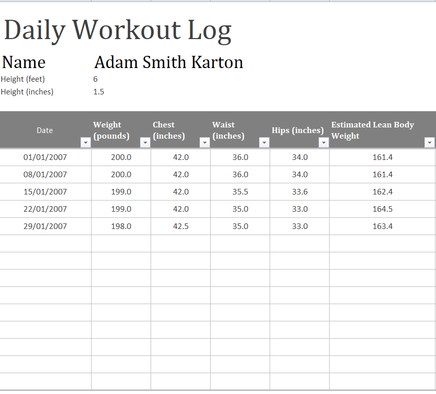 Official Workout Log Excel Template