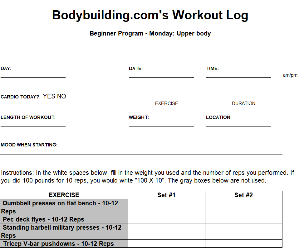 Best Workout Log Template for Beginners